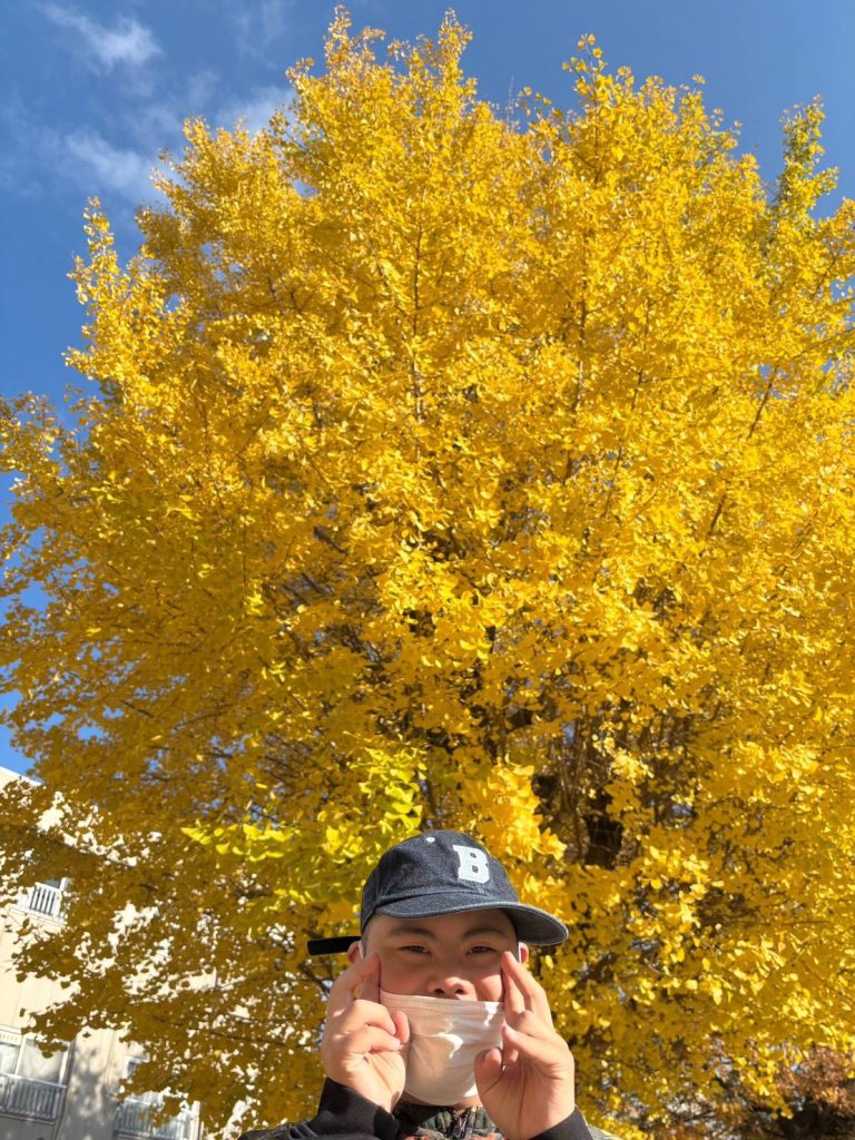 そんなとある日、移動支援でU様とキャナルシティや近所の公園に出かけて、綺麗な紅葉🍁をバックにパシャリ✨